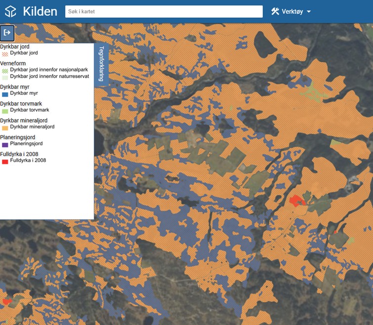 Du vil også få vite kvar du kan finne kart over dyrkbar jord både gjennom kartinnsynsløysingar og nedlasting, samt i arealoversiktar.